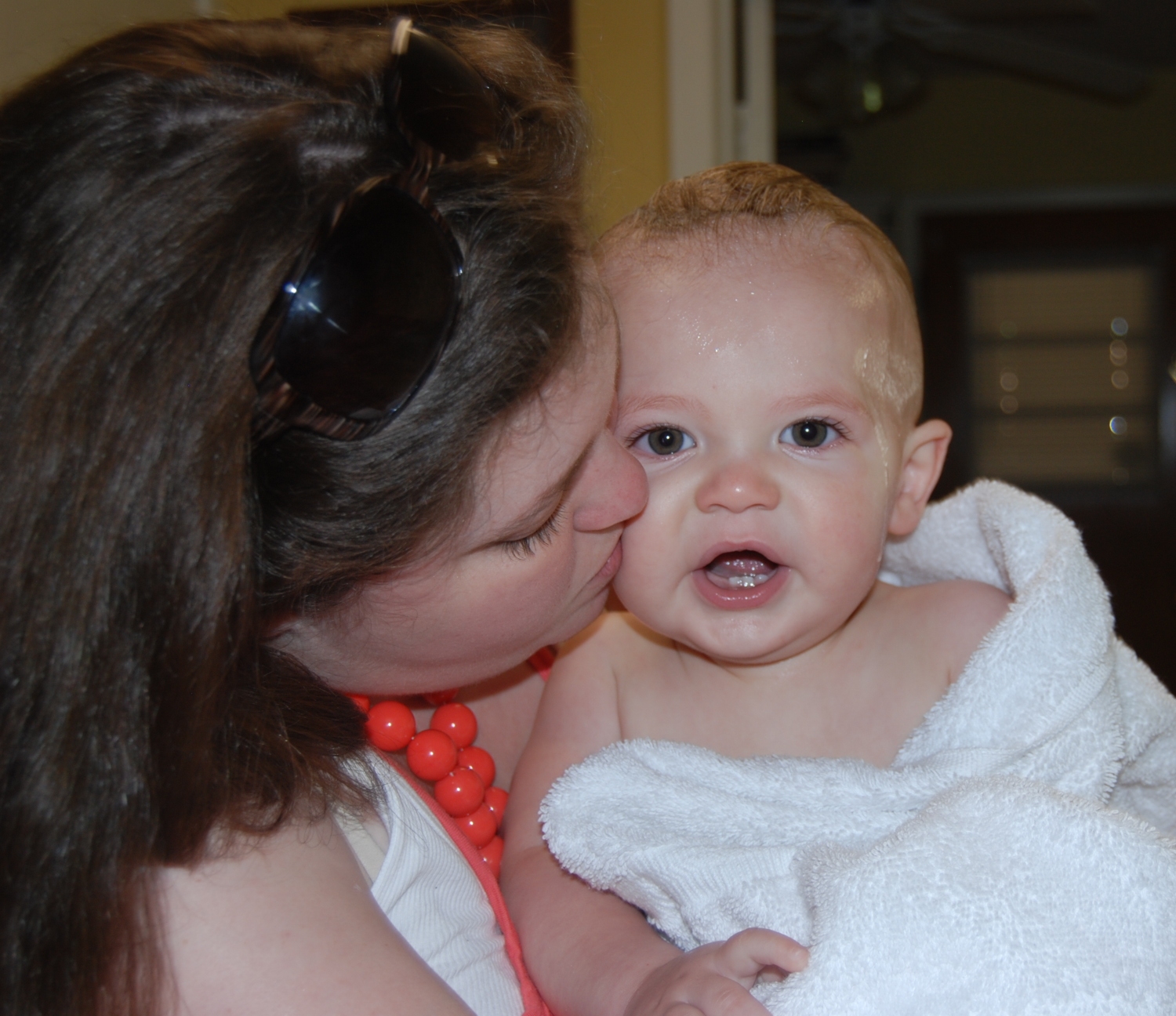 One of the pleasures of our freedom is unhindered time with family and friends. I got to experience that on Monday, as some of my husband’s family from various parts of Texas converged upon my mother-in-law Susan’s house (Susan, whom many of you have been praying for while undergoing chemo the past few months; that will continue until November.) We all brought food and drink and children and met there to talk and laugh and eat and celebrate! My husband’s nephew Ben has a one-year-old son now, Carter; he is a beautiful baby. We were so blessed to get to meet him, finally! What a beautiful baby, and so good-natured! Another nephew, Matthew, has a two-year-old named Conner. You’ve never seen a toddler with so much personality! He entertained us all day! 🙂
