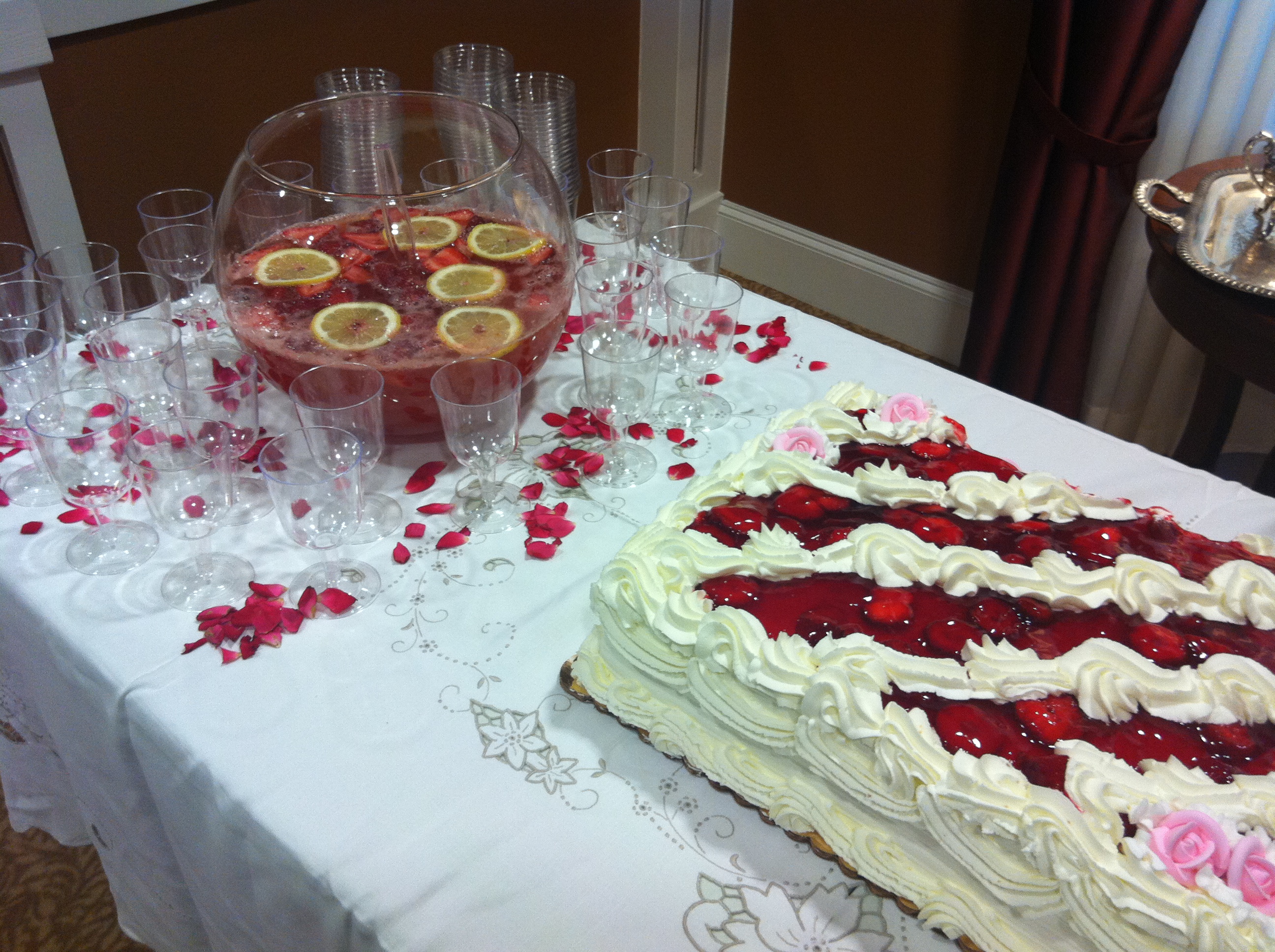 Ok, on with the punch story and recipe. My mother-in-law, Susan, is the marketing director for the Azalea Trails Assisted Living Center in Tyler. She also loves to help arrange social events for the residents so they can have lots of fun. In honor of Prince William and Kate’s wedding, she arranged a royal wedding celebration and asked me to do a cooking demonstration before the appearance of “The Queen,” a very good Queen Elizabeth I impersonator. She was really wonderful!