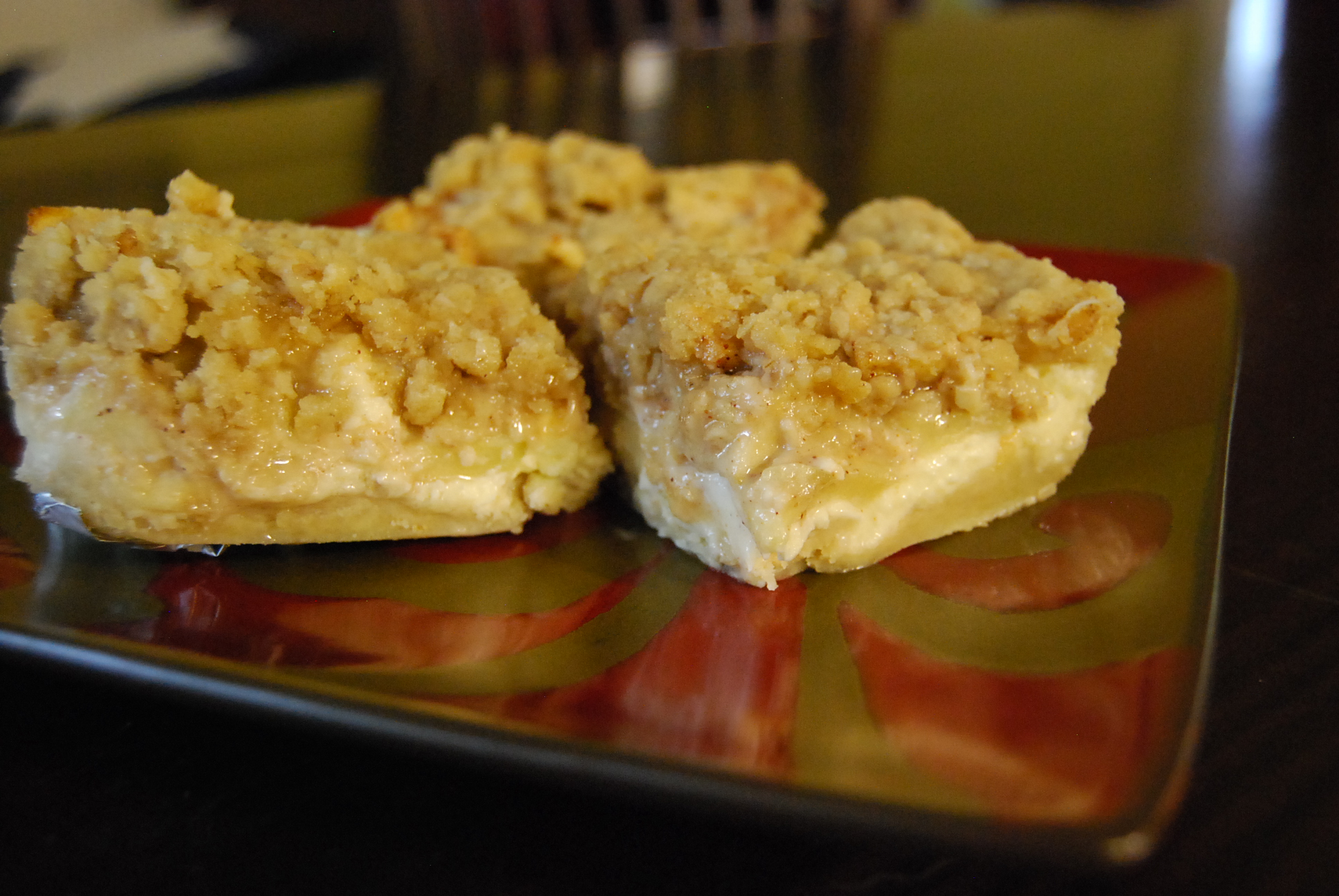 Now, to my point. In the research I’ve been doing for next week’s segments, I came across a recipe from the sweet Ms. Paula Deen and thought I’d try it out.  Ultimately I decided not to use  it on the show, not because it wasn’t absolutely delicious (it was), but because when my son tried it he said it “tastes like fall.” Well, I love fall, but that’s not what I want for the show this week, so I won’t use that recipe on tv. However, I thought I’d share it here in case you don’t care if you eat something that tastes like fall right now, or perhaps you might like to save the recipe and pull it out in October. Whatever you like, dear friends.  🙂   It’s very good, tastes like a cross between apple pie and cheesecake, and has a crust that tastes like a delicious cookie.  Nothing bad about that, is there?