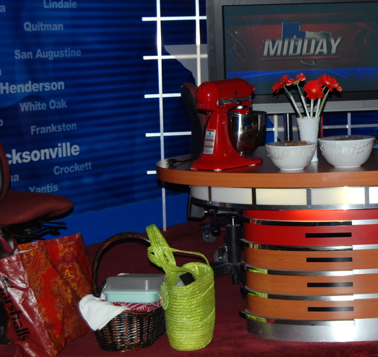 I have been enjoying working on my baking segment the past week and a half. Really, it’s so much fun that I can’t believe I get to do it!  It is a lot of hard work, I have to admit. For each of those three and a half minute segments, there have been hours spent  researching recipes, buying the groceries, experimenting in the kitchen, getting feedback, figuring out how to make my set look pretty,  packing baskets (I usually take three baskets full of food, dishes, utensils, etc. with me each day), and then getting up e.a.r.l.y.   Oh, so early. 3:30 a.m. early.   😉  It’s worth it, though, and I hope you who are watching are enjoying what I’m sharing with you there on KLTV7.