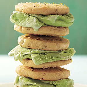 - 6. Place vanilla ice cream and sherbet in a medium bowl; lightly fold and swirl together. Scoop 1/4 cup ice cream mixture onto bottom of one cookie, and top with one cookie. Cover each sandwich with plastic wrap; freeze 4 hours or until firm.