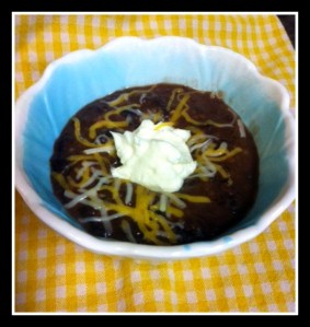 This soup approximates the black bean soup at Panera Bread. It costs about $3 for the whole pot, and that served all three of us tonight with a little left over for my lunch. (at Panera, a bit more expensive, right?)