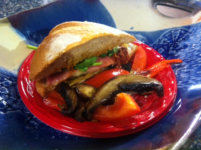 Making this sandwich is a great, healthy way to use up all that beautiful bounty from the garden, including squash of all types, green tomatoes, eggplant slices, fresh herbs, and anything else you may enjoy!