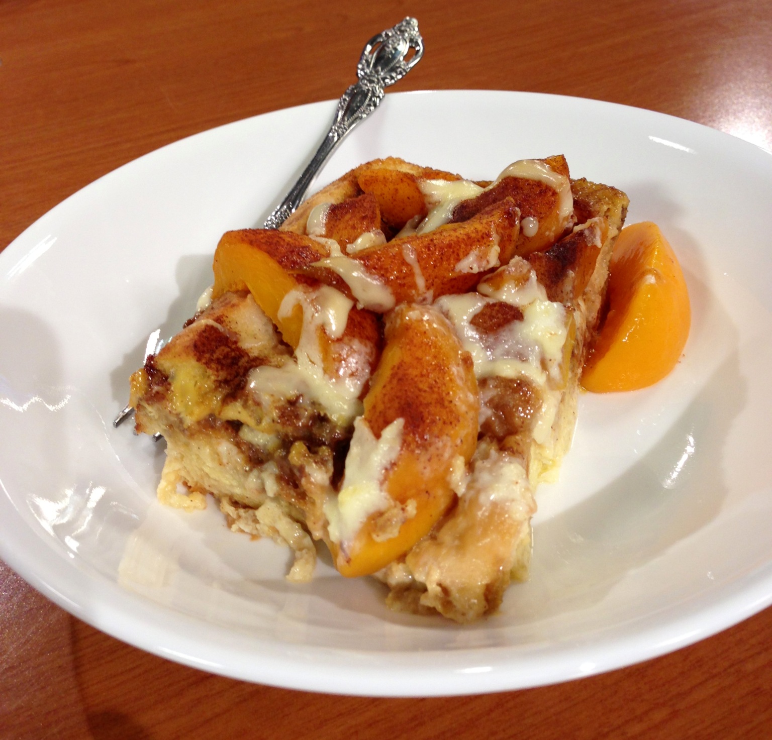 Unfortunately, we lost most of our peach crop in East Texas due to a freeze, so there aren’t so many to be had, but here’s a simple recipe for peaches and cream French toast casserole that you can use with sliced canned peaches, if that’s all you have. It’s very delicious, so don’t hesitate!