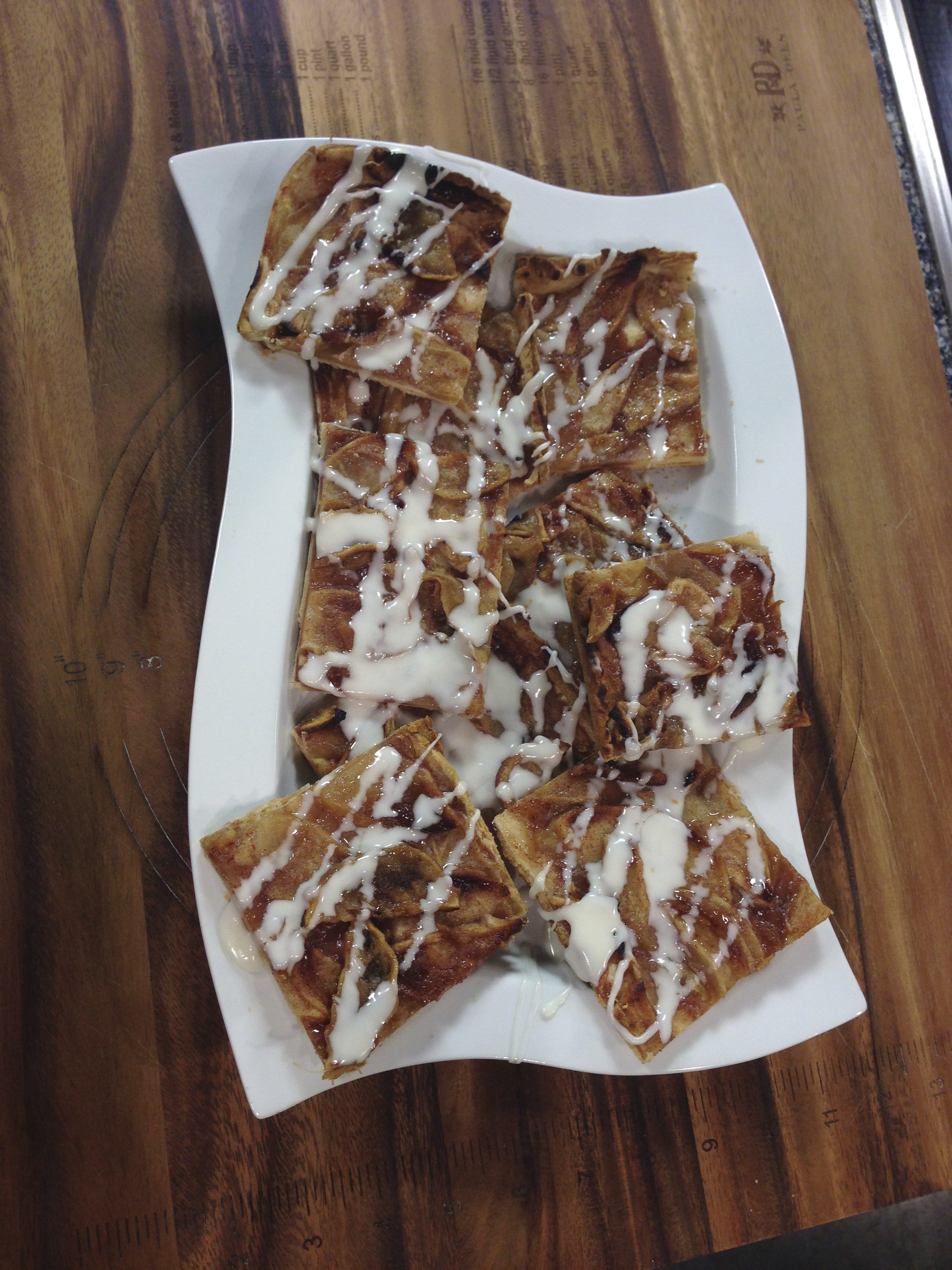 It’s exactly what you might picture: a big slab of pie crust with an apple filling, no top crust needed. Then,it’s baked to simple perfection. Easy as pie. (Sorry, I had to say it.) 😉