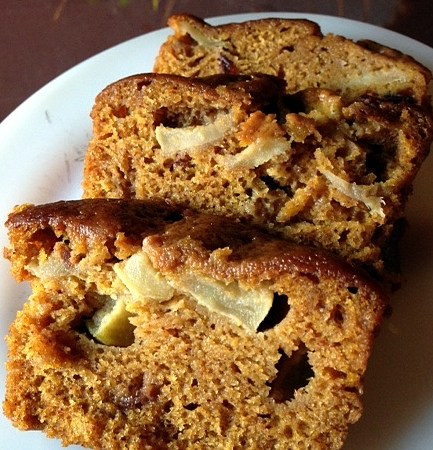 Spiced apple-pumpkin bread with dried cranberries